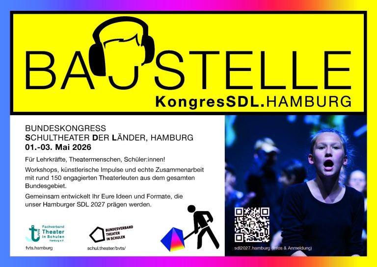 Hier beginnt das Hamburger SDL 2027. Noch bevor sich der Vorhang hebt, lädt Hamburg 2026 zum Bundeskongress ein – als bundesweiter Treffpunkt für alle, die Theater an Schulen gestalten, verändern und voranbringen wollen: Lehrkräfte, Theatermenschen und Schüler:innen.