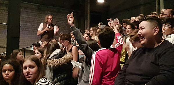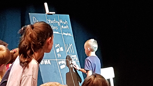 Und Deine SuS ja auch noch nie, also lernst Du auch gleich, wie sich Deine SuS fühlen und verhalten werden – an Dir selbst! Bei unseren für Lehrer*innen und Schüler*innen gleichsam konzipierten Workshops (Termine s.u.) zeigen und erproben wir genau die Spiele (Games), die für die Austragung der Finals zentral wichtig sind. Diese Games verlaufen aber natürlich durch die Vorgaben und Impulse des Publikums und durch die Interaktion auf der Bühne mit anderen Spieler*innen immer wieder überraschend neu und anders.