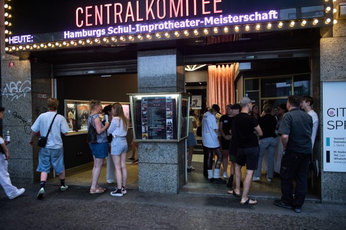 Fotos ( Ruffer, Rechte frei) aus dem Imperialtheater, der GSB und der LoLa, wo unsere ersten Teilnehmer:innen Matches und Gastauftritte mit der Steifen Brise hatten und von Kampnagel, dem Austragungsort unserer ersten Meisterschaft 2018.